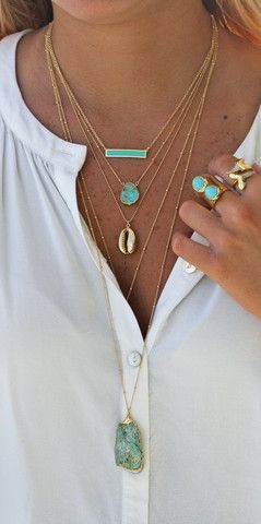Aliás, há vários colares multiníveis e gravatinhas que já fazem todo esse trabalho. Da mesma maneira, usar vários pingentes juntos em um mesmo colar também é bacana.